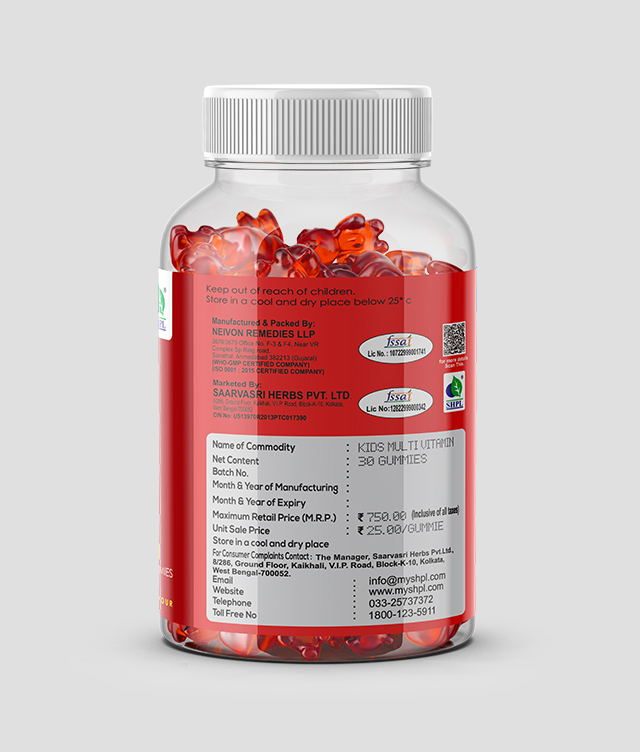 Introducing SHPL Kids Multivitamin Gummies, specially crafted to nourish and support the vibrant lives of children. Bursting with essential vitamins and minerals, each delightful gummy is a tasty treat that packs a powerful punch of nutrition. Designed with kids' unique needs in mind, our formula promotes healthy growth and development while bolstering immune function for active, playful days. With a blend of vitamins A, B complex, C, D, E, Zinc and the goodness of Curcumin and DHA, these gummies provide comprehensive support for overall well-being, ensuring children have the vital nutrients they need to thrive.