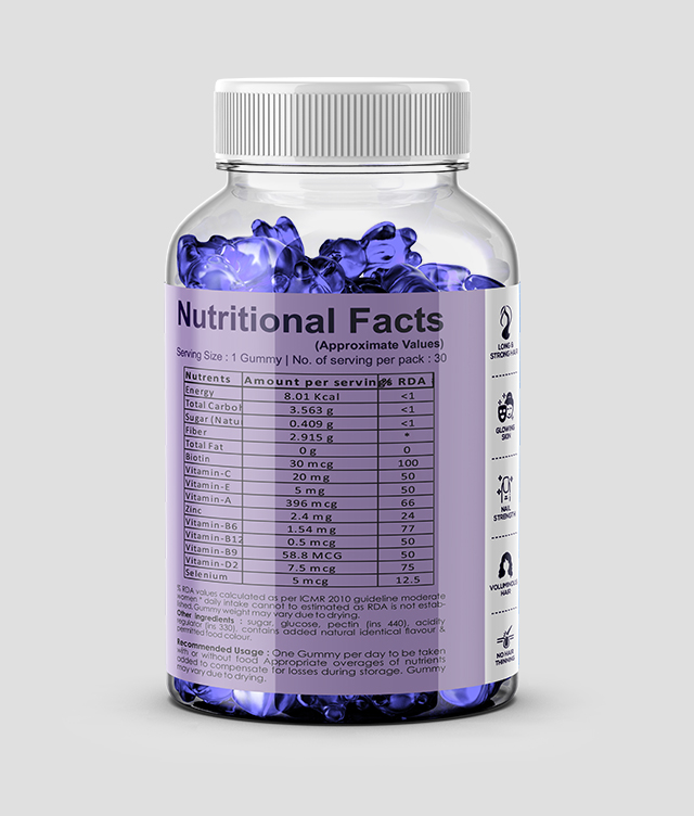 With their irresistible flavor and powerful benefits, SHPL Biotin gummies make nourishing your beauty from within a delightful and indulgent experience. Trust in our Biotin Gummies to help you shine with confidence, day after day!