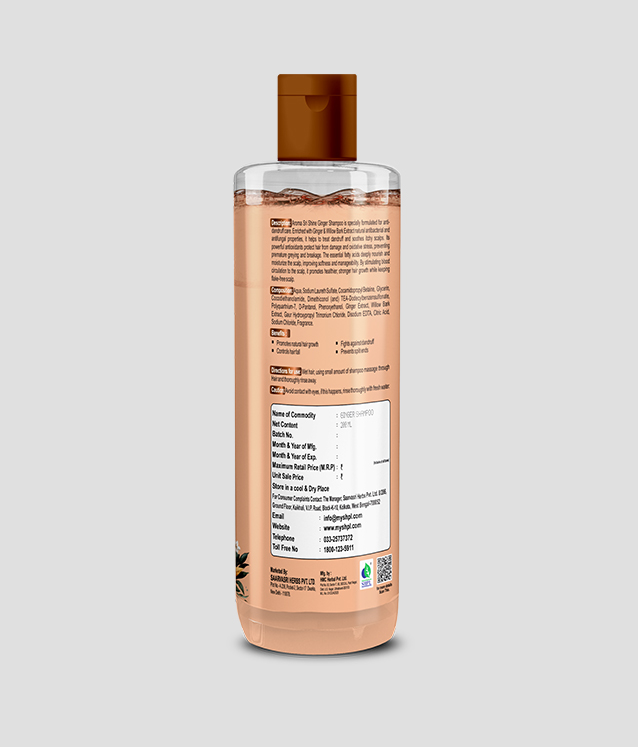 Ginger helps stimulate each hair follicle, which in turn promotes natural hair growth. The many vitamins, minerals, and fatty acids in ginger also contribute to strengthening your hair strands to combat hair loss, and ginger contributes to restoring moisture loss. Our Ginger Anti-Dandruff & Anti hair fall Shampoo gently loosens flakes and helps soothe dry, itchy scalps. If you live in fear of flakes, this is the best shampoo for dry scalps. It helps take care of the snowstorm shoulders that can drive a dandruff sufferer to distraction, and smells pleasantly – well, gingery.
